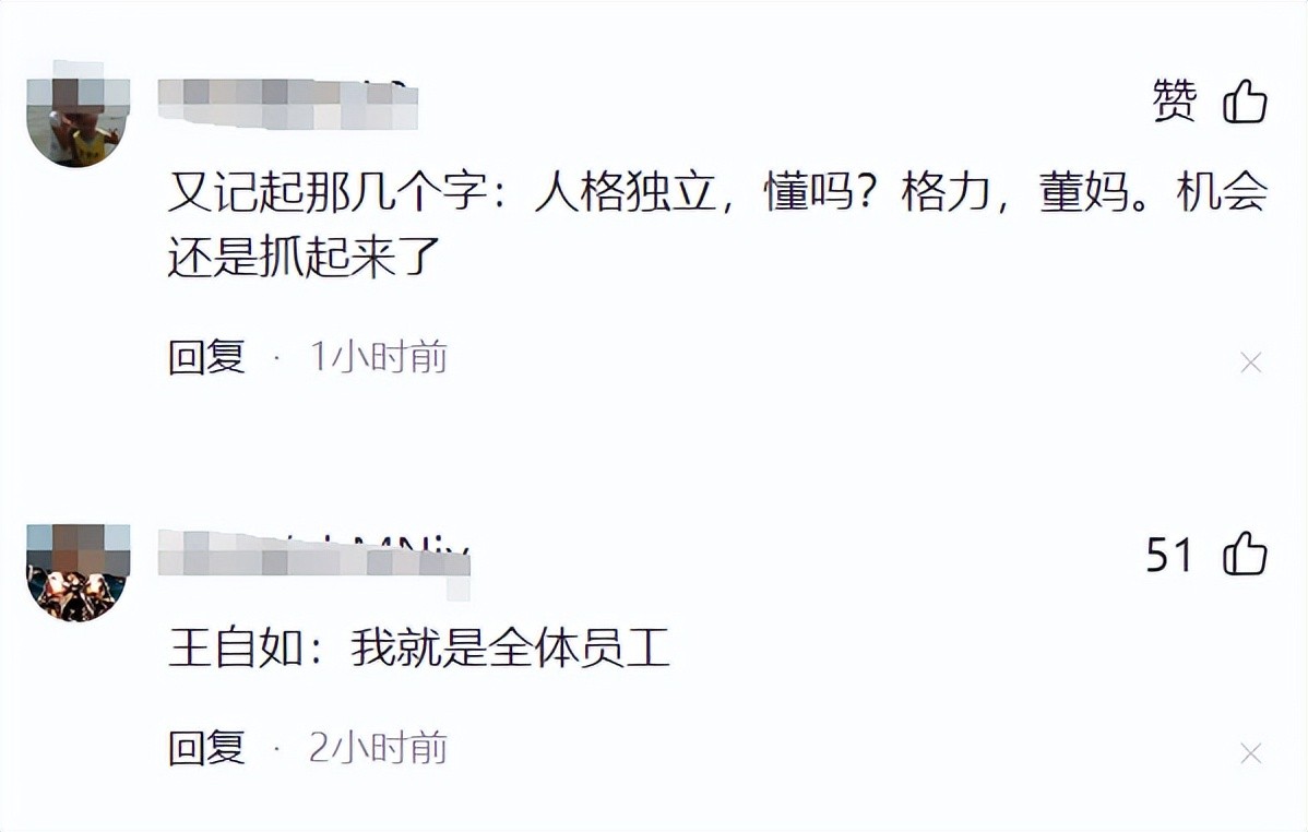 消息一出,首先在评论区冒出头的,就是格力“发言人”王自如。网友纷纷打趣问他能分到多少年终奖,王自如会不会直接变身百万富翁。这些言论看得我直笑。的确,作为董明珠的“左膀右臂”,王自如这次的酬劳绝对不会少。
