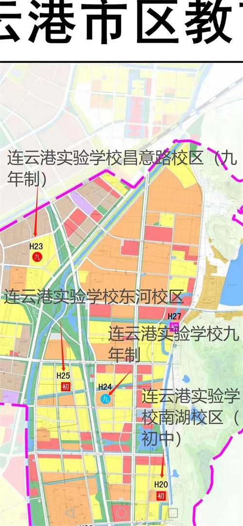 连云港市实验学校(九年制)、连云港实验学校昌意路校区(九年制)、连云港实验学校东河校区(初中)、连云港实验学校南湖校区(初中)四大校区五年内全部登场。其中连云港市实验学校(九年制)继续保留;连云港实验学校昌意路校区(九年制)小学部已经建成秋季入学,初中部可能2022年建设,2023年投入使用。连云港实验学校南湖校区(初中)2021年四季度开工,2022年秋季建成投入使用;连云港实验学校东河校区(初中)据说2024年开工,2025年投入使用。
