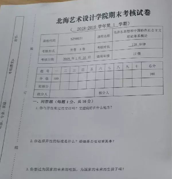 调查发现,这两套思想思考题存在低俗和错误的内容,会对学生思想产生不良影响甚至错误导向。调查还发现,该校在去年的《大学语文》考试试题中,也出现一些包含低俗内容的试题。
