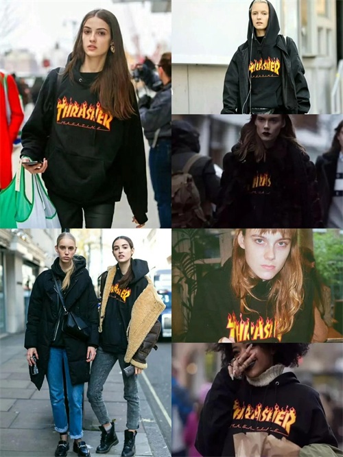 媒体的推动,明星的引领,Thrasher 热xiao的程度甚至可以与 Supreme 相提并论,Thrasher 的服饰也受到越来越多非滑手的喜爱。