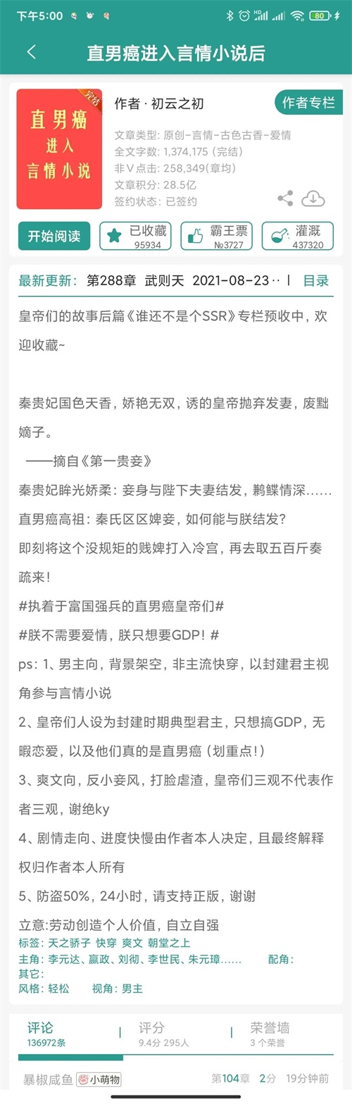 简评:历史上的皇帝们,穿进各种狗血言情小说,用他们强大的直男癌精神成为鉴婊达人,拒绝狗血,专心搞起GDP,沙雕与严肃并存。跟着文中皇帝视角打脸虐渣搞事业,爽!