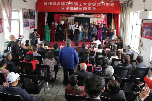 4月13日,著名评剧表演艺术家谷文月回到家乡固安,来独流兰英评剧团指导工作,受到相关领导及父老乡亲们热烈欢迎,场面感人,现场赋诗以记之。