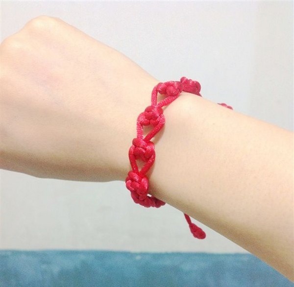 4、拉紧线。重复上面的做法,即可编出连续的同心结。