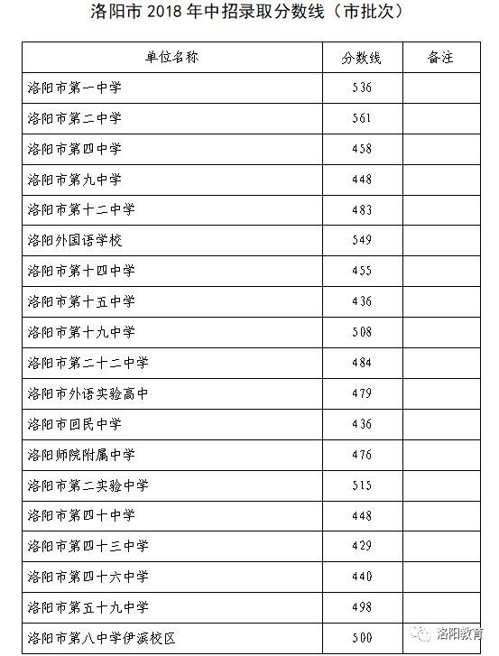 「重磅」刚刚,洛阳市2018年中招录取分数线公布