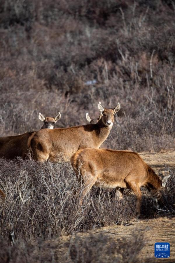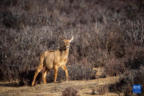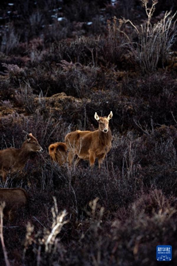 2023年11月发布的《新时代党的治藏方略的实践及其历史性成就》白皮书提到,曾被国际社会认为已绝种的西藏马鹿“失而复得”,由发现时的200余头增长到800余头。 新华社记者 旦增尼玛曲珠 摄