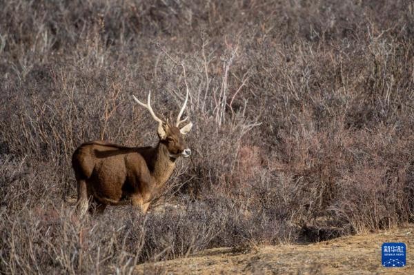 这是在西藏山南市桑日县拍摄的马鹿(1月14日摄)。 新华社记者 旦增尼玛曲珠 摄