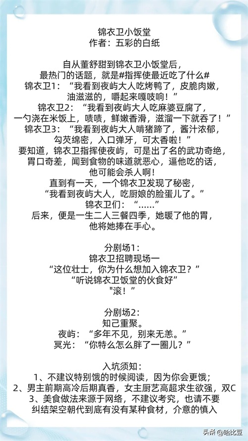 《锦衣卫小饭堂》五彩的白纸 231章 厨艺超高求生欲超强小厨娘&前期冷酷后期真香锦衣卫指挥使