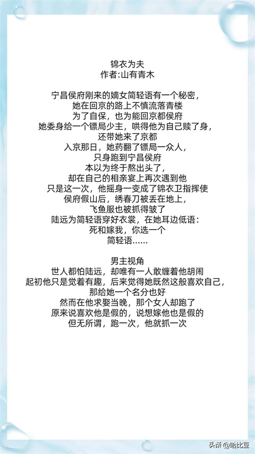 精选!男主是锦衣卫的古言文《锦衣杀》《兄长在上》《锦衣为夫》