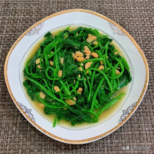 番薯,大多数地方食用的都是块根,叶子用作饲料,喂猪羊。潮州人除了吃块根,偏偏也爱吃番薯叶,番薯叶涩味厚重,用于清炒,必须猛火厚朥,爆香蒜头或普宁豆酱调味才能去除苦涩,收获甘甜。旧社会油朥缺乏,炒后苦涩难以入口,但也养活了不少穷苦人家。