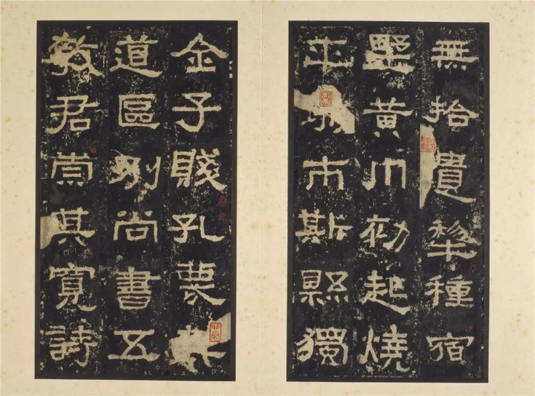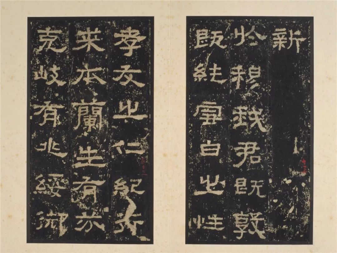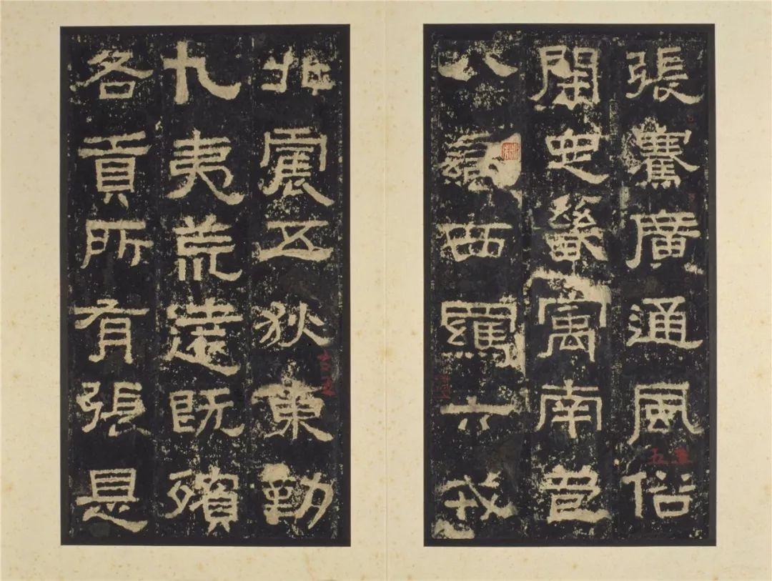 《张迁碑》在章法方面采取的是有行有列,字距大于行距的布白方式,于整饬中见错落变化。其细微差异多因结体方式而存在。