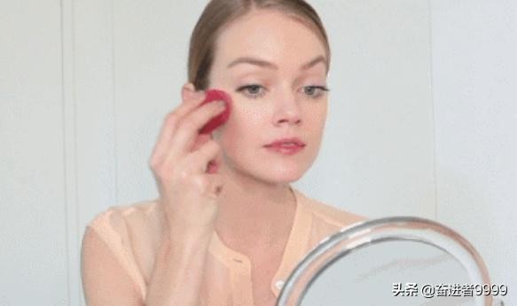 2、粉底(。打底做好之后,上妆第一步就是涂粉底液。如需自然轻薄妆效,可以直接用手或者专业粉底刷涂抹粉底,在特别需要均匀肤色的地方,比如鼻翼两侧和嘴角边可以用化妆海绵加以修饰。