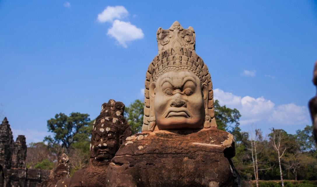 不过由于占城人的入侵导致都城毁于战火,后经过阇耶跋摩七世的重建,并且加高城墙、在城外挖掘护城河、在城中放置佛教观音菩萨的雕像。这样更加坚固,更加体现国王的威严和神圣之感。