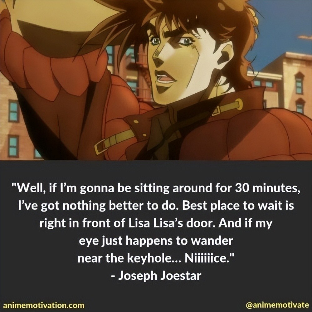 “好吧,如果我要坐 30 分钟,我没有更好的事可做。 最好的等待地点就在丽莎丽莎的门前。 如果我的眼睛恰好在钥匙孔附近徘徊……Niiiiiice。” ——约瑟夫·乔斯达