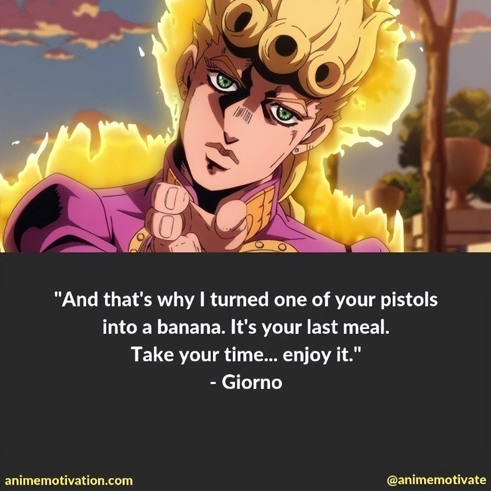 “这就是为什么我把你的一支手枪变成了香蕉。 这是你的最后一餐。 慢慢来……好好享受吧。” – 乔鲁诺
