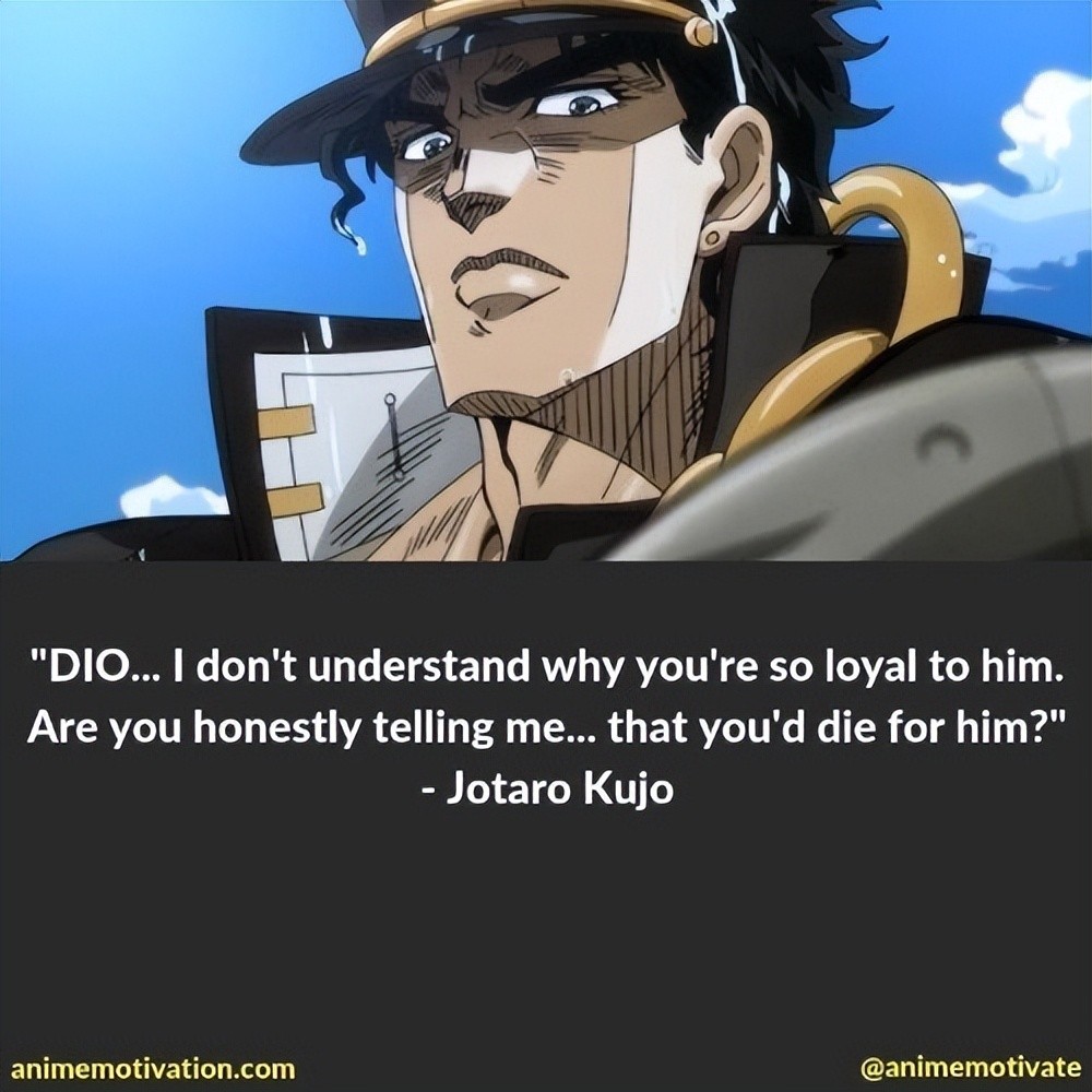 “DIO……我不明白你为什么对他那么忠诚。 你是诚实地告诉我……你愿意为他而死吗?” ——九条承太郎