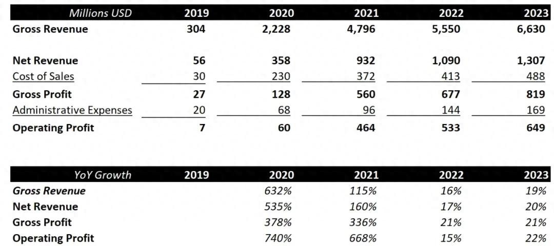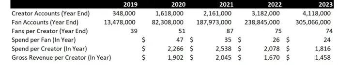 刨去给平台创作者的53亿后,公司净收入13亿美元,相当于一个人就创造了3100万美元的收入。最赚钱的科技公司都远远达不到这种恐怖人效。