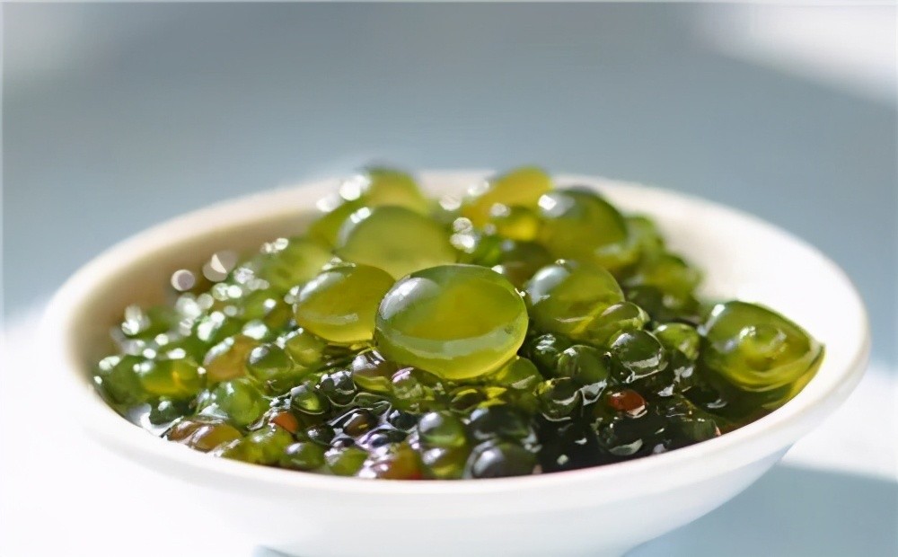 葛仙米,是一种球状藻体,呈蓝绿色或黄褐色,由很多球形单细胞串连而成,外表透明胶质物,和木耳相似,干燥时会卷缩,煮熟后比米饭粒大。