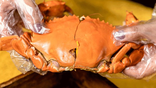黄油蟹在农历6-8月的产卵期会爬上海岸,在阳光的剧烈照射下,将体内的蟹膏分解成金黄色的油脂,逐渐渗透到体内各个部位。