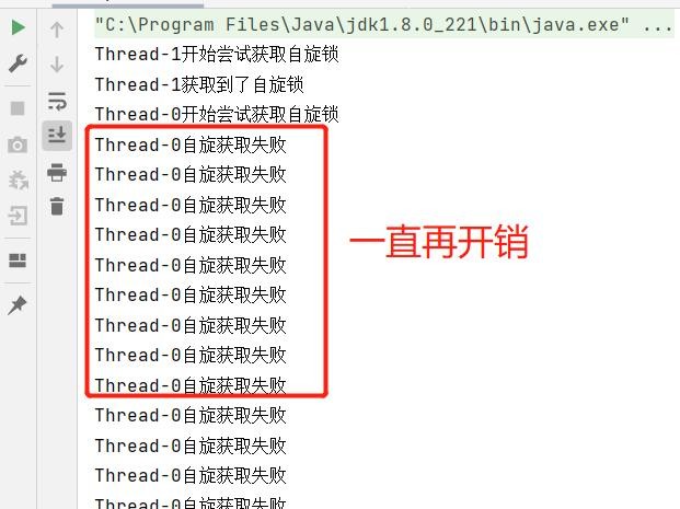 AtomicInteger中调用unsafe进行自增操作的源码中do-while循环就是一个自旋操作,如果修改过程中遇到其他线程竞争导致没修改成功,就在while里死循环,直到修改成功。