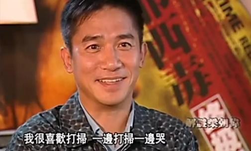 有一次拍《阿飞正传》,导演王家卫总跟他过不去,一场戏让他演了27次,他觉得很对不起搭档张曼玉,回家一个人边打扫边哭。一连哭了好几天,被刘嘉玲撞见,立马打电话质问王家卫:“你怎么他了?在家哭了好几天”