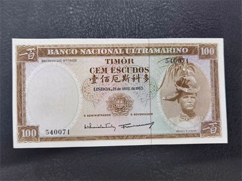 最近在整理手头上的纸币,发现一张外国纸币上有汉字,因为入手时间太长,以致已经忘记关于这张纸币的信息,看央行的名字只知道是大西洋银行发行的,葡萄牙殖民地都是由大西洋银行发行的,东帝汶和澳门同为葡萄牙殖民地。