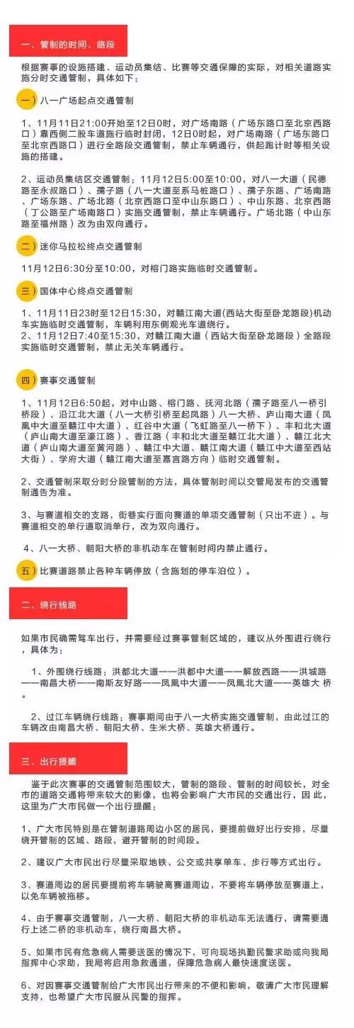 地铁:11月12日提前至5:30发车,南昌市轨道交通集团在赛事当天将上下行首班地铁从早上6:30提前至5:00分。