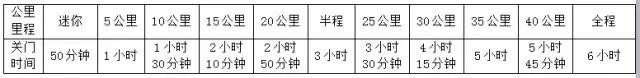 关门距离和时间(以7:30鸣枪出发时间为准)