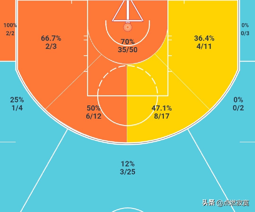 小结:虽然由于场均上场时间的不足使得作为中锋的比塔泽的篮板数据看起来并不是很出色,但是从他的篮板分布和拼抢情况来看,可以看出比塔泽并不是一个擅于拼抢篮板的篮板高手。