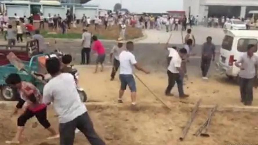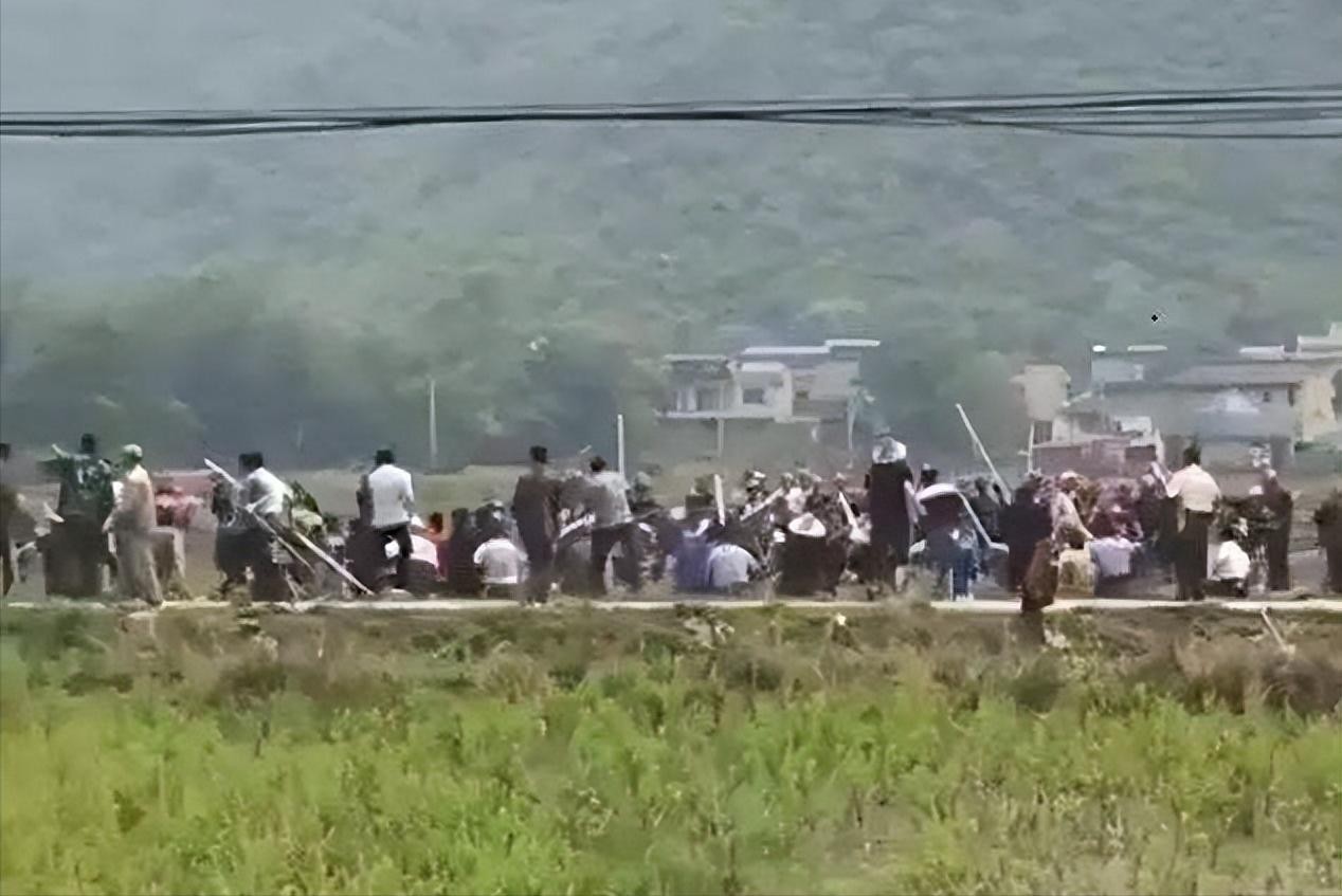 双方村长各自纠集了一大群村民打算决一胜负,最开始村民们还是拿着铁锹锄头等农具参与械斗。