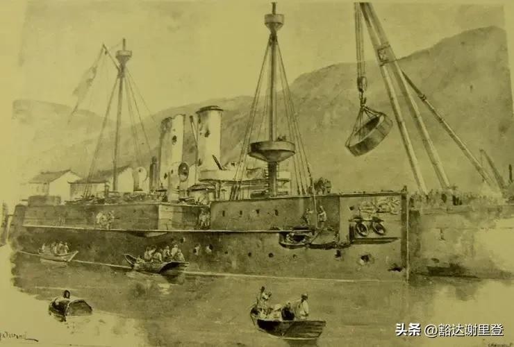 定远舰由德国伏尔铿造船厂建造,1881年开工,1885年回国服役。造价约140万两白银