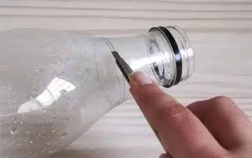 用刀子沿着笔的印记切割饮料瓶
