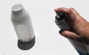 在饮料瓶的外表上喷上白色喷漆