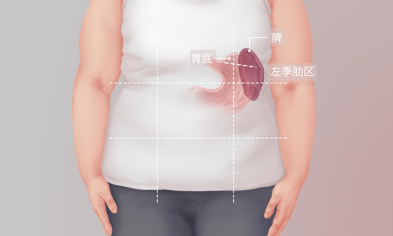 人体脾脏位于腹腔的左上方,位于左季肋区(腹部九分法左上区)胃底与膈肌之间。