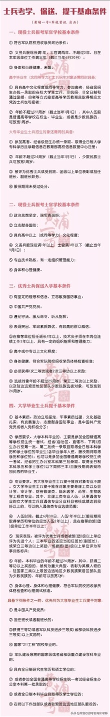 距离2020年士兵报考军校的日子越来越近了,很多考生们都是第一次参加,都不太了解士兵考学、保送、提干的基本条件,导致了失去了宝贵的机会,今天小编整理了一部分关于报考军校的干货,供各位考生参考。