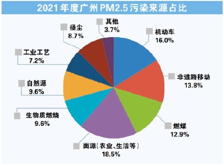 日前,市生态环境局发布了广州市2021年度PM2.5来源解析成果。市生态环境局有关负责人表示,全市各区域PM2.5来源解析结果表明,不同源对广州市不同区域的影响存在差异。其中,机动车源、面源、扬尘源和工业工艺源对中心城区影响较大,燃煤源和生物质燃烧源对北部区域影响较大,非道路移动源对南部区域影响较大。