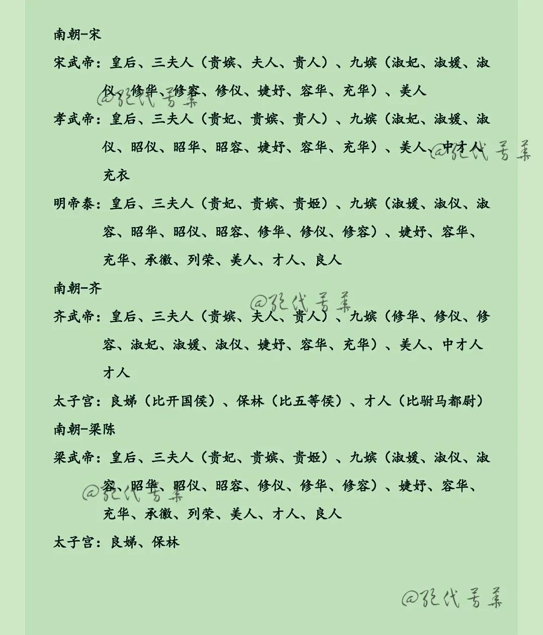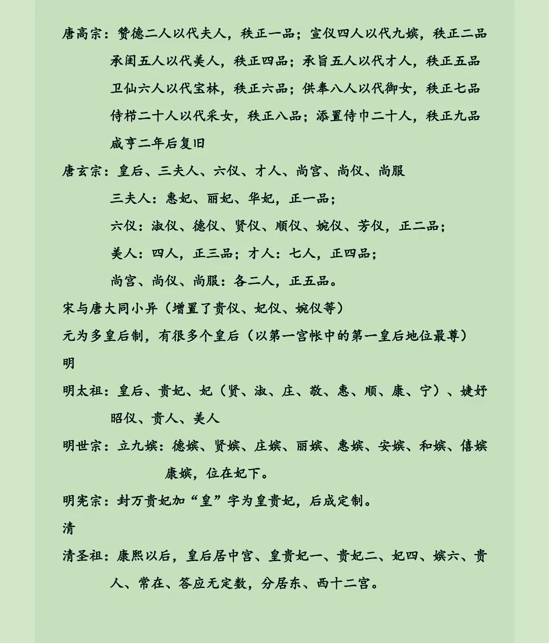 历代后宫妃嫔等级制度整理