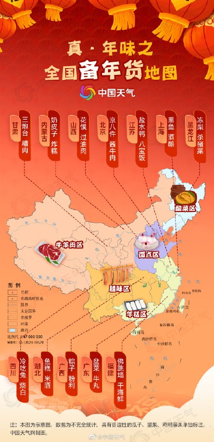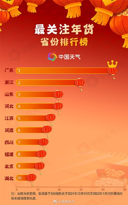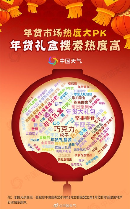 1月17日,2022年春运拉开帷幕。年味儿都是从置办年货开始的,中国天气绘制了全国备年货地图全国年货地图,盘点了全国年货搜索大数据。大数据显示,广东人最注重备年货,年轻人成购置主力军。另外,对南方人来说,腊肠腊肉、年糕等是年货必备,北方则更爱囤牛羊肉、花馒头等,东北偏爱酸菜,看看有你记忆中的年味吗?