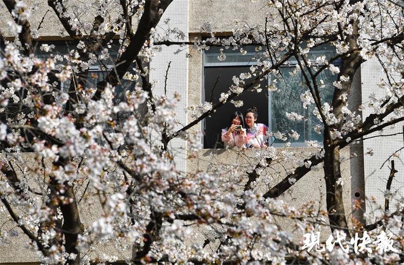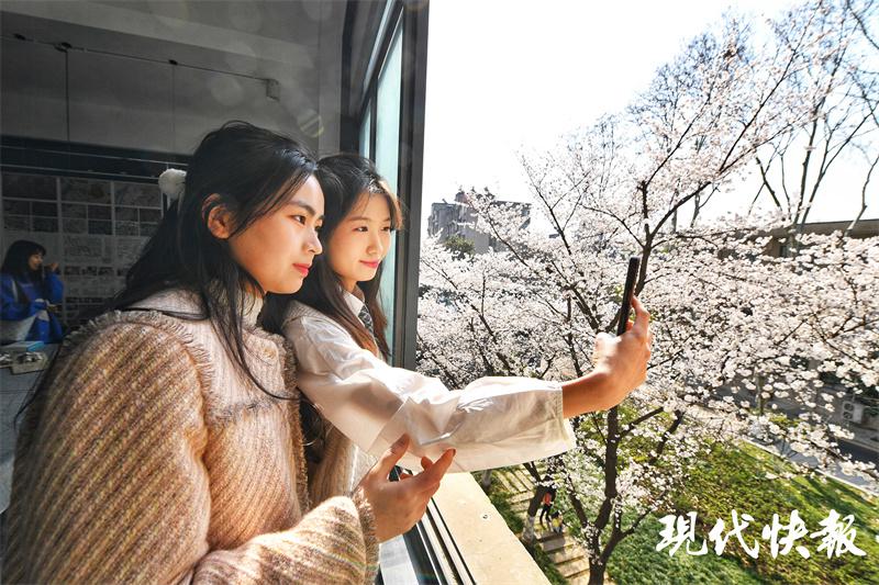 3 月 15 日一早,东南大学建筑学院的李天骄等同学来到珍珠河边赏花写生;另一边,建筑学院的陈国恩、能源与环境学院的姜牧笛和他们的同学们在学校的网红打卡地——樱花教室拍照打卡。