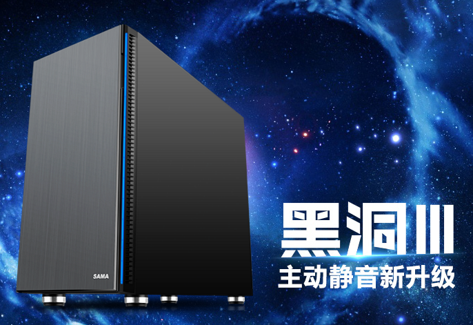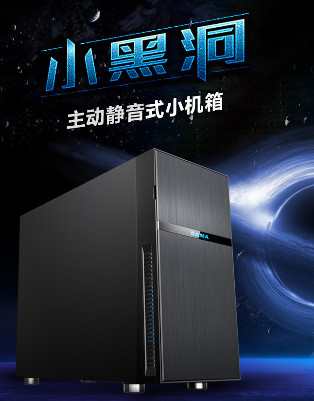 先马主打静音的机箱”先马黑洞”为玩家设计而生。黑洞静静地存在于浩瀚宇宙中,无声,却被一直探索,与先马推出静音机箱的理念如出一辙。黑洞外观大气沉稳,前面板采用了可开启设计,光驱、前置风扇位置都被隐藏在开合面板里面,这样的设计除了外观看起来更简洁以外,更多的还是为了屏蔽噪音,保证出色的静音效果。而后先马黑洞小音箱为了响应玩家的需求也诞生了,变的是体积,不变的是黑洞的本质。