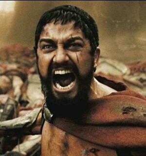 此表情出自《斯巴达三百勇士》——一部从头到尾都散发着雄性荷尔蒙的电影,紧紧围绕“不要怂,就是干”的中心思想开展叙事,取材自世界历史上最典型的以少胜多的温泉关之战。讲述波斯大军入侵希腊时,希腊的下属城邦斯巴达城派出以国王列奥尼达为首的三百勇士在温泉关抗击敌军。最终三百勇士全部阵亡,同时带走了波斯大军两万余人。光看这些数据就知道本片杀的有多激烈了,反正用尸体砌墙我就只在这片子里看过。