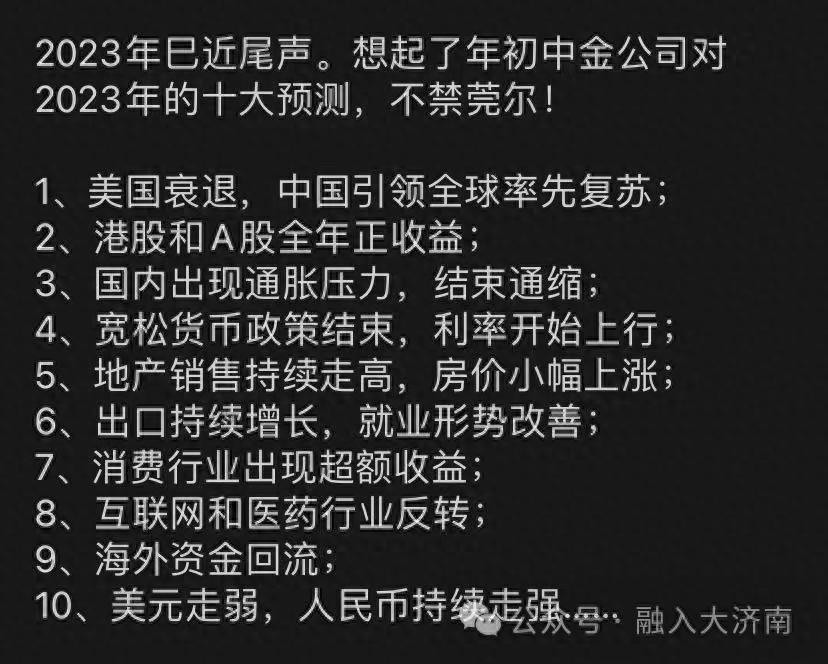 新的一年开始了,房价还会不会继续跌的问题,又一次推到前面。预测这个事情,十有八九是不准的,想起了年底大家调侃的中金公司对2023年的十大预测,好巧不巧的,一个都没对。