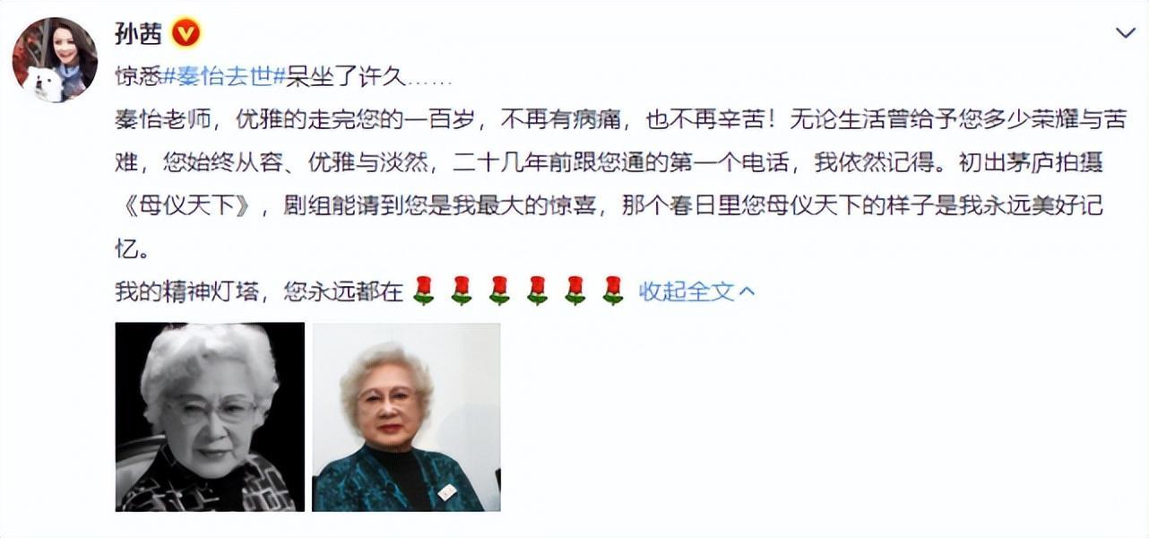 在听闻前辈秦怡去世的消息后,娱乐圈很多明星都有发文进行悼念。