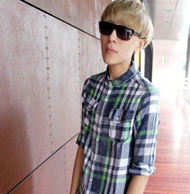 学生发型中最常见的黑色短直发西瓜头清新自然,结合上黄色的渲染是不是很新潮呢,平齐的刘海搭配上墨镜有效的缩短了长脸的线条,酷酷的表情更好的诠释男生不羁洒脱的个性。