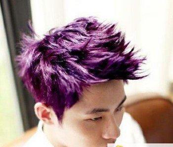 飞机头发型的男生优雅有活力,不只有女孩才喜欢紫色,将两侧的发丝修剪的很短,中间带有纹理烫的短发发丝有着凌乱的美感,额前的发丝向后梳理彰显男生洒脱随性的个性。