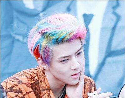 独特设计的彩色渲染恐怕只有炫酷时尚的小鲜肉们才可以驾驭吧,这款浅黄色、粉色以及浅紫色的渲染都是充满少女气息的颜色在男生的发型中却有着别致的美感,凌乱的短烫发张扬有魅力。