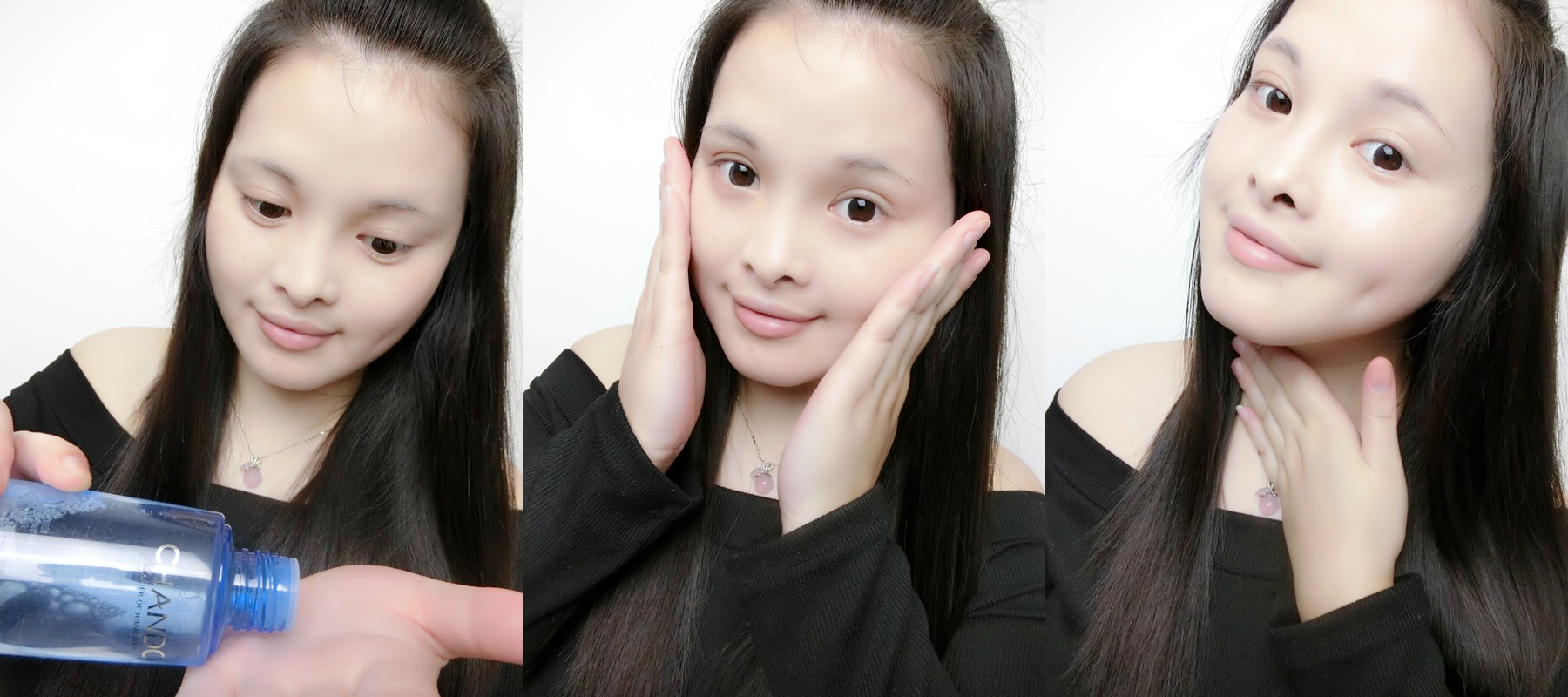 涂抹化妆水的时候我习惯用手,取适量自然堂雪域冰肌水于掌心,双手轻轻按压,然后轻拍至脸颊,还有脖子的位置不能忘记哦~ 现在正好是换季时节,如果感觉有干燥起皮也可以用化妆棉浸透化妆水,做湿敷,基本上一次就会有所改善呢。补水神器不是白说的~