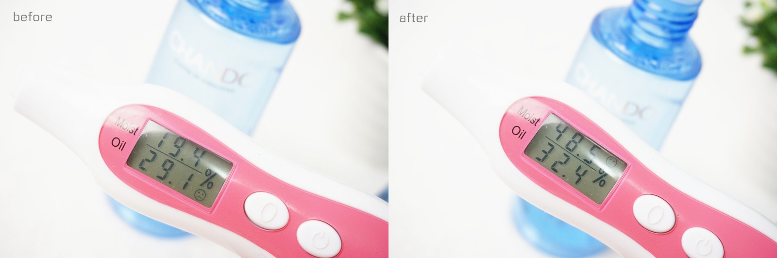 使用前我的肌肤水分值是19.4%,使用之后半小时测试,肌肤水分值还维持在48.5%之高!证明自然堂雪域冰肌水的补水锁水能力强,其中丰富的矿物质和营养能给皮肤补充能量,长时间也不会干燥。