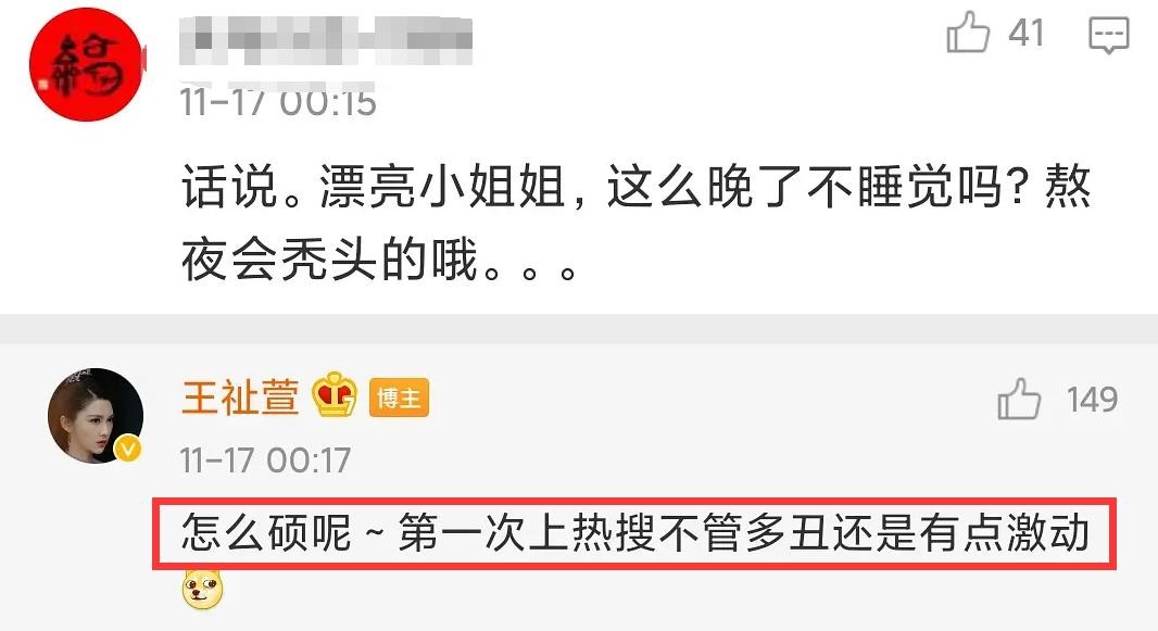 而且这位姐姐因为第一次上热搜,兴奋到睡不着,半夜回复了很多粉丝的留言,她的性格非常好,心也很大。