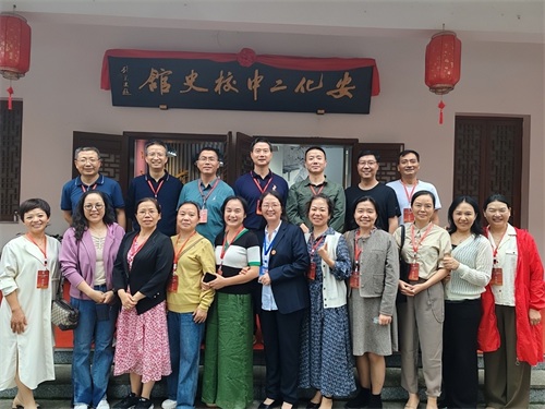 参加活动的部分校友在新揭幕的安化二中校史馆前合影。