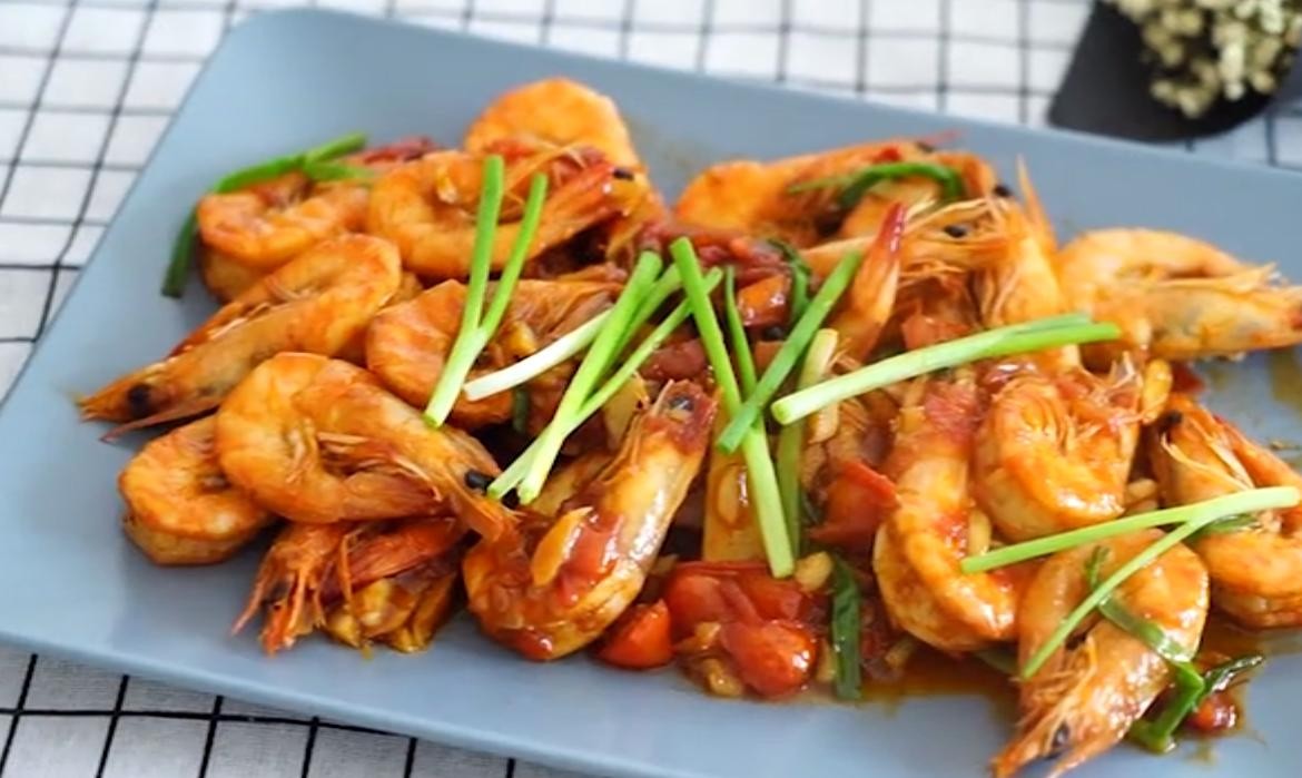 虾,生姜,葱,大蒜,番茄酱,糖,白胡椒粉,盐,料酒,蚝油。